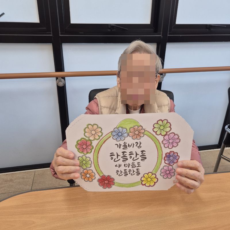 ⚬ 10월 24일 금요일_ 여가지원의 날 ⚬ 관리자 2025-10-24 17:20 오전프로그램 : 외부강사 – (인지)목표: 인지향상에 도움을 주고며 원하는 작품을 완성할때 성취감을 준다. 계절에 맞는 재료의 내용을 살펴 보고 경험담을 이야기 나눠 본다.기대효과: 계절에 맞는 재료를 사용하여 계절의 변화에 적응할수 있다. 경험담을 이야기하며 자신감을 갖는다.오후프로그램 : 밴드 스트레칭(신체)목표: 근육 유연성 증진 및 관절 가동 범위 확대. 통증 감소와 긴장 완화. 근육과 관절의 부상 예방. 전신 순환 개선으로 신체 활력 증대한다.기대효과: 근육과 관절의 유연성 향상으로 움직임 개선. 긴장된 근육과 통증 완화로 신체적 편안함 제공. 혈액순환 개선으로 신체 활력 증대. 스트레스 감소 및 정서적 안정감 증대. 일상생활 동작 수행 능력 강화한다. 다음글 ⚬ 10월 28일 화요일_ 호기심의 날 ⚬ 이전글 ⚬ 10월 22일 수요일_ 창의성의 날 ⚬ 목록