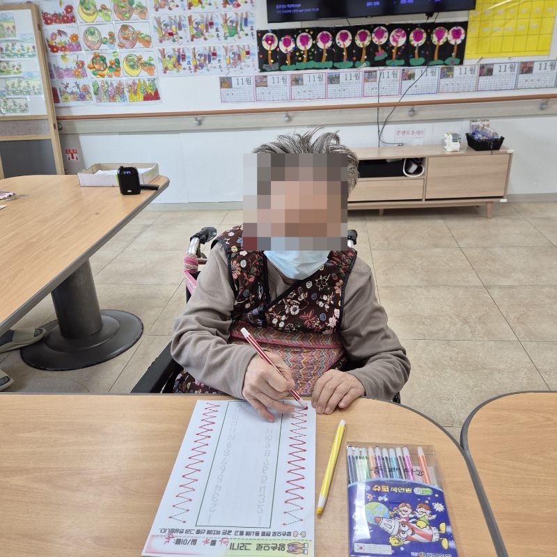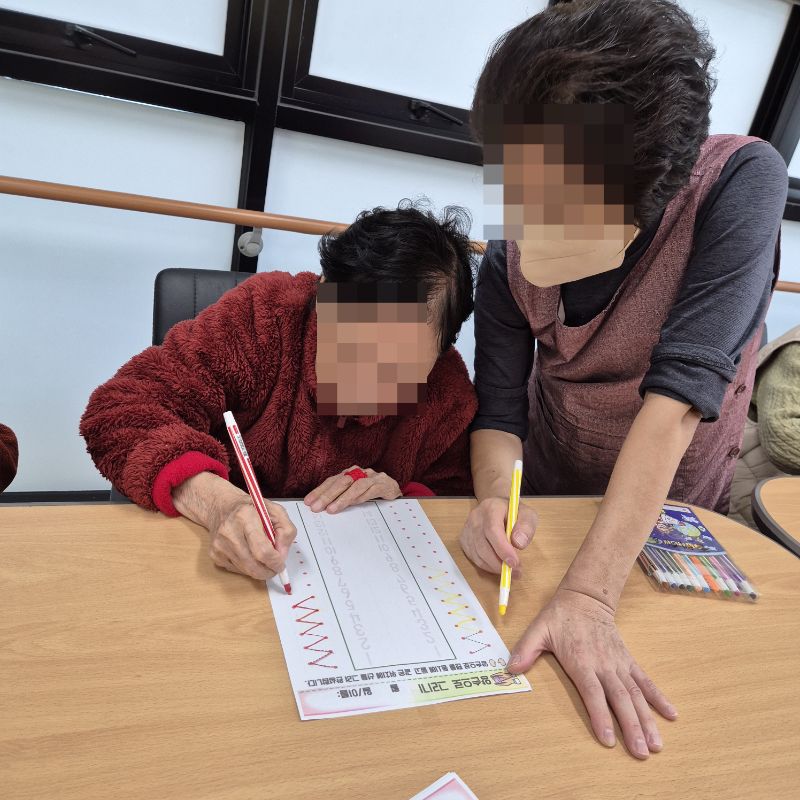 ⚬ 11월 5일 수요일_ 창의성의 날 ⚬ 관리자 2025-11-05 17:22 오전프로그램 : 외부강사- 레크레이션 (여가)목표: 레크레이션을 통해 어르신들의 신체활동을 향상한다 .기대효과: 몸을 움직이며 대∙소근육과 신진대사에 도움을 준다.오후프로그램 : 선따라 그리기(인지)목표: 선긋기를 통해 집중력을 향상시킨다. 손 운동으로 소근육기능 유지를 향상시킨다.기대효과: 상상력, 집중력 향상 및 성취감 형성한다. 다음글 ⚬ 11월 7일 금요일_ 여가지원의 날 ⚬ 이전글 ⚬ 11월 4일 화요일_ 호기심의 날 ⚬ 목록