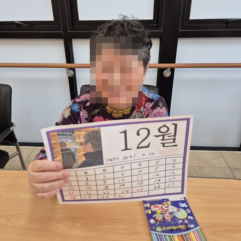 ⚬ 11월 26일 수요일_ 창의성의 날 ⚬ 관리자 2025-11-26 17:24 오전프로그램 : 외부강사- 레크레이션 (여가)목표: 레크레이션을 통해 어르신들의 신체활동을 향상한다 .기대효과: 몸을 움직이며 대∙소근육과 신진대사에 도움을 준다.오후프로그램 : 달력만들기 (인지)목표: 수를 순서대로 구분할 수 있도록 하고, 계절에 따른 특징과 변화를 잘 인식하여 표현할 수 있도록한다기대효과: 연산기능을 통한 인지기능 향상 및 숫자에 대한 인식기능을 향상한다. 다음글 ⚬ 11월 28일 금요일_ 여가지원의 날 ⚬ 이전글 ⚬ 11월 25일 화요일_ 호기심의 날 ⚬ 목록
