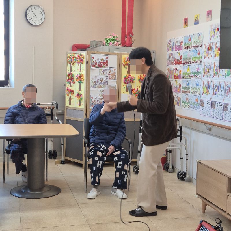 ⚬ 12월 2일 화요일_ 호기심의 날 ⚬ 관리자 2025-12-02 17:47 오후프로그램 : 공연관람 – 가수 한병호목표: 여러 어르신들과 함께 공연을 관람하며 공감대를 형성하고 즐거움을 얻는다.기대효과: 다양한 공연활동을 통해 문화생활을 경험할 수 있다.노래를 흥겹게 들으시며 즐거워하셨습니다.멀리까지 와주시고 성심성의껏 노래를 불러주신 가수 한병호님께 감사드립니다. 저희 원 모든 분들께서 기를모아 응원드립니다.가수 한병호~ 흥해라~~~~!!!!오후프로그램 : 외부강사 – (인지)목표: 인지향상에 도움을 주고며 원하는 작품을 완성할때 성취감을 준다. 재료의 내용과 사용방법의 변화 알아본다.기대효과: 새로운 소재의 재료로 창의력을 증진한고 완성된 작품을 보며 성취감을 느껴 만족감 형성한다. 다음글 ⚬ 12월 3일 수요일_ 창의성의 날 ⚬ 이전글 ⚬ 12월 1일 월요일_ 자기존중의 날 ⚬ 목록