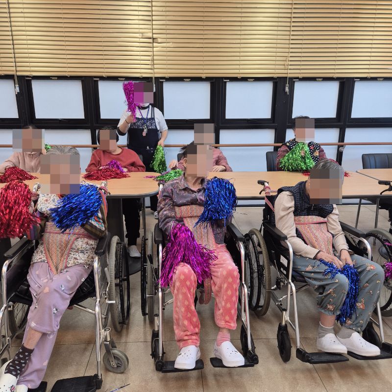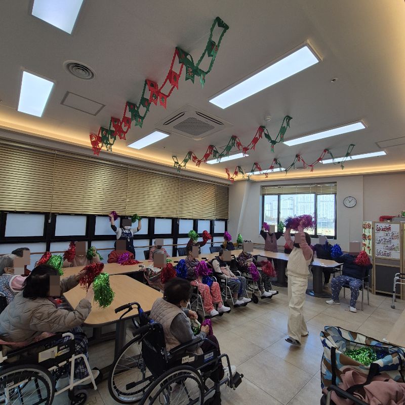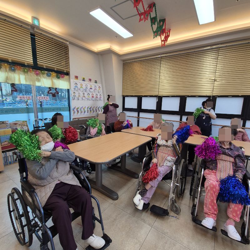 ⚬ 12월 3일 수요일_ 창의성의 날 ⚬ 관리자 2025-12-03 17:29 오전프로그램 : 외부강사- 레크레이션 (여가)목표: 레크레이션을 통해 어르신들의 신체활동을 향상한다 .기대효과: 몸을 움직이며 대∙소근육과 신진대사에 도움을 준다.오후프로그램 : 색종이 모자이크 (인지)목표: 색종이와 솜을 오리고 붙이는 과정에서 손을 움직이며 소근육 기능을 유지할 수 있다.기대효과: 집중력향상, 소근육기능 유지 향상, 성취감를 얻는다. 다음글 ⚬ 12월 5일 금요일_ 여가지원의 날 ⚬ 이전글 ⚬ 12월 2일 화요일_ 호기심의 날 ⚬ 목록