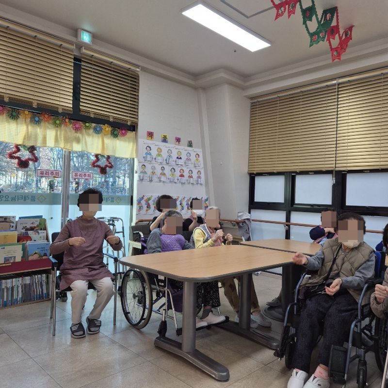 ⚬ 12월 8일 월요일_ 자기존중의 날 ⚬ 관리자 2025-12-08 17:14 오전프로그램 : 외부강사 – (인지)목표: 인지향상에 도움을 주고받으며 원하는 작품을 완성할때 성취감을 준다.기대효과: 소근육발달과 작품의 완성함을 보며 성취감을 느끼며 만족감을 형성한다.오후프로그램 : 침상 관절 운동(신체)목표: 관절의 가동 범위 유지 및 개선. 근육 경직 예방과 혈액순환 촉진. 욕창과 근골격계 합병증 방지. 전신의 이완과 정서적 안정 도모한다.기대효과: 관절 유연성과 근력 강화로 신체기능 유지 및 개선. 삼킴 능력 향상으로 안전한 섭취 지원. 손과 팔의 조작 능력 향상으로 일상생활 자립도 증가. 균형 감각 및 조화운동 능력 개선으로 낙상 위험 감소. 지구력 증대로 신체 활동량 증가 및 전신 건강 증진한다. 다음글 ⚬ 12월 9일 화요일_ 호기심의 날 ⚬ 이전글 ⚬ 12월 5일 금요일_ 여가지원의 날 ⚬ 목록