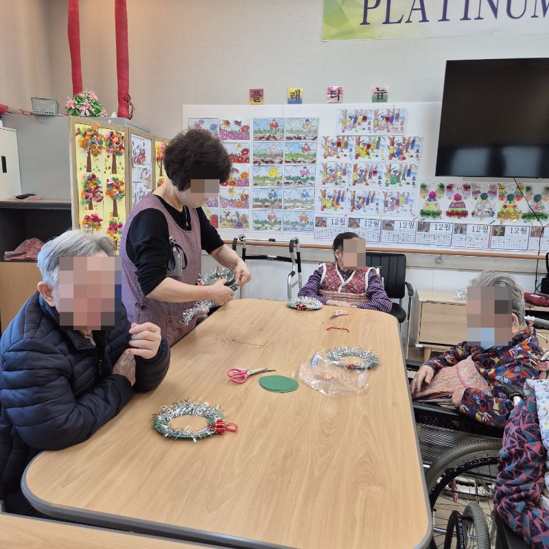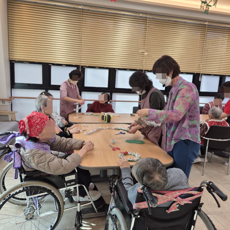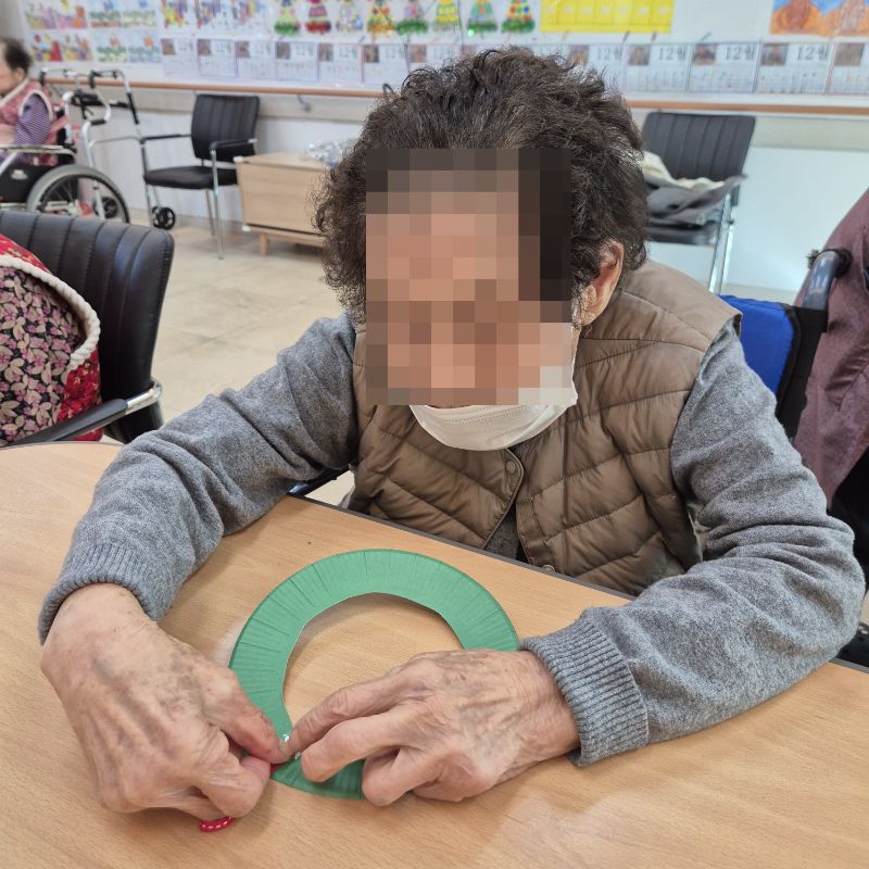 ⚬ 12월 9일 화요일_ 호기심의 날 ⚬ 관리자 2025-12-09 17:27 오전프로그램 : 마라카스 연주(여가)목표: 어르신들이 리듬을 즐기며 억압된 감정과 스트레스를 해소하고 정서적 안정감을 느낄 수 있도록 돕는다.기대효과: 마라카스를 흔들며 소근육 운동과 리듬감을 발달시켜 신체 활동 증진, 리듬과 소리를 통한 감정 해소와 긍정적인 정서 유지, 악기 연주를 통해 집중력과 기억력 개선에 기여, 그룹 활동을 통해 어르신들 간의 교류 활성화한다.오후프로그램 : 외부강사 – (인지)목표: 인지향상에 도움을 주고며 원하는 작품을 완성할때 성취감을 준다. 재료의 내용과 사용방법의 변화 알아본다.기대효과: 새로운 소재의 재료로 창의력을 증진한고 완성된 작품을 보며 성취감을 느껴 만족감 형성 한다. 다음글 ⚬ 12월 10일 수요일_ 창의성의 날 ⚬ 이전글 ⚬ 12월 8일 월요일_ 자기존중의 날 ⚬ 목록