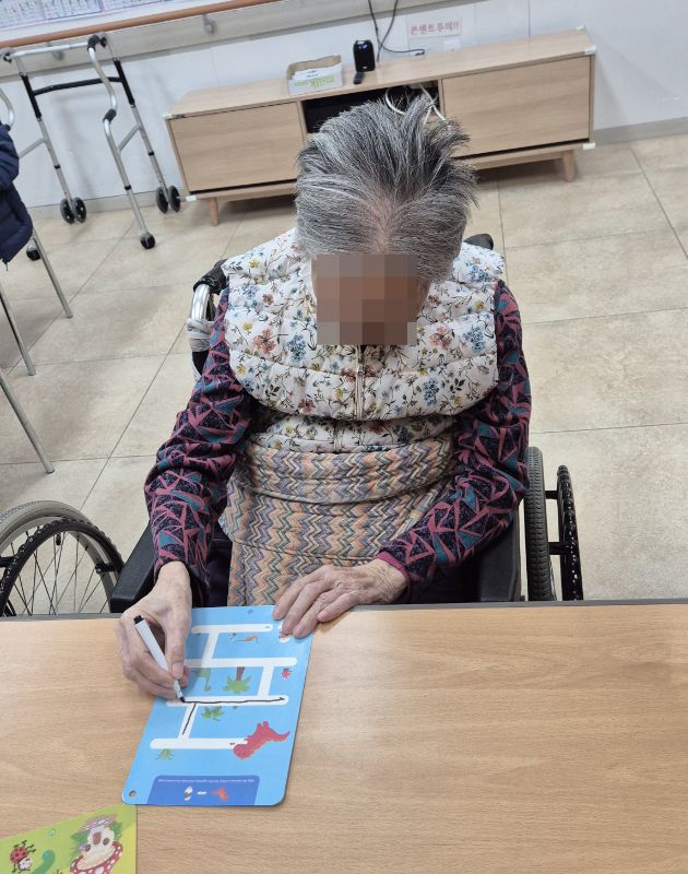 ⚬ 12월 10일 수요일_ 창의성의 날 ⚬ 관리자 2025-12-10 17:11 오전프로그램 : 외부강사- 레크레이션 (여가)목표: 레크레이션을 통해 어르신들의 신체활동을 향상한다 .기대효과: 몸을 움직이며 대∙소근육과 신진대사에 도움을 준다.오후프로그램 : 선따라 그리기(인지)목표: 선긋기를 통해 집중력을 향상시킨다. 손 운동으로 소근육기능 유지를 향상시킨다.기대효과: 상상력, 집중력 향상 및 성취감 형성한다. 다음글 ⚬ 12월 12일 금요일_ 여가지원의 날 ⚬ 이전글 ⚬ 12월 9일 화요일_ 호기심의 날 ⚬ 목록