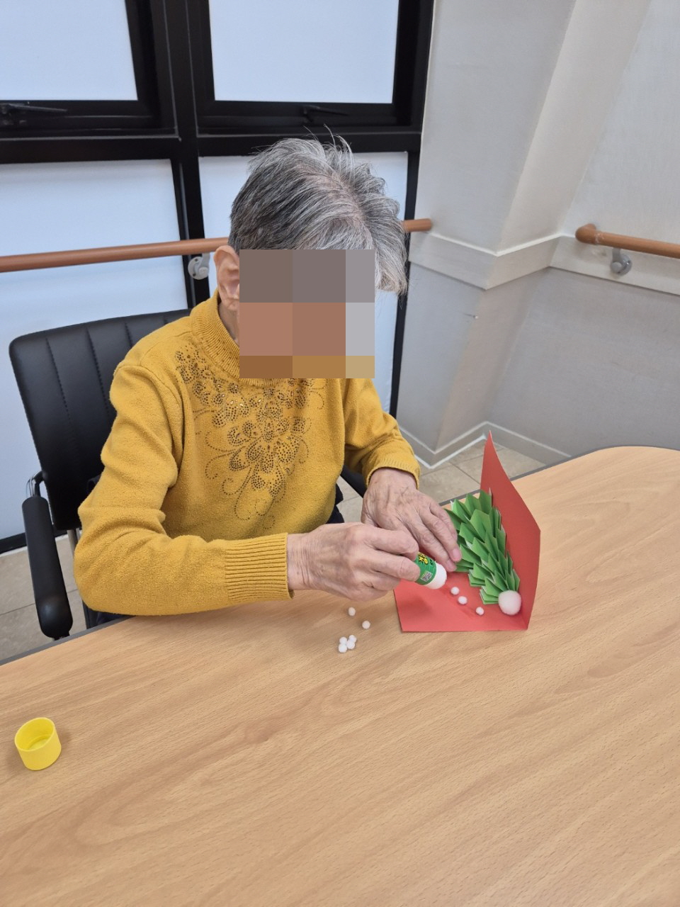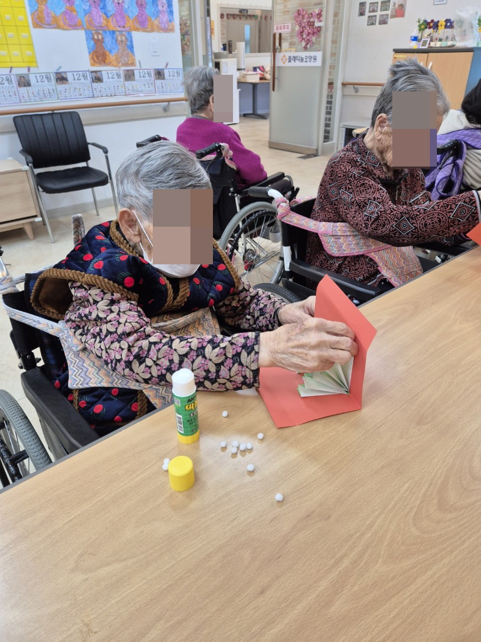 ⚬ 12월 16일 화요일_ 호기심의 날 ⚬ 관리자 2025-12-22 17:26 오전프로그램 : 따뜻한 발(여가)목표: 발을 따뜻하게 하여 혈액 순환을 하고 긴장과 스트레스를 해소하며, 병의 예방과 건강회복에 도움을 준다.기대효과: 혈액 순환 및 긴장과 스트레스 해소, 질병의 예방 및 정신적 유대감 형성을 기대 한다.오후프로그램 : 외부강사 – (인지)목표: 인지향상에 도움을 주고며 원하는 작품을 완성할때 성취감을 준다. 재료의 내용과 사용방법의 변화 알아본다.기대효과: 새로운 소재의 재료로 창의력을 증진한고 완성된 작품을 보며 성취감을 느껴 만족감 형성 한다. 다음글 ⚬ 12월 17일 수요일_ 창의성의 날 ⚬ 이전글 ⚬ 12월 15일 월요일_ 자기존중의 날 ⚬ 목록
