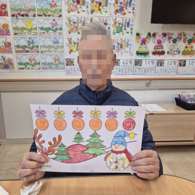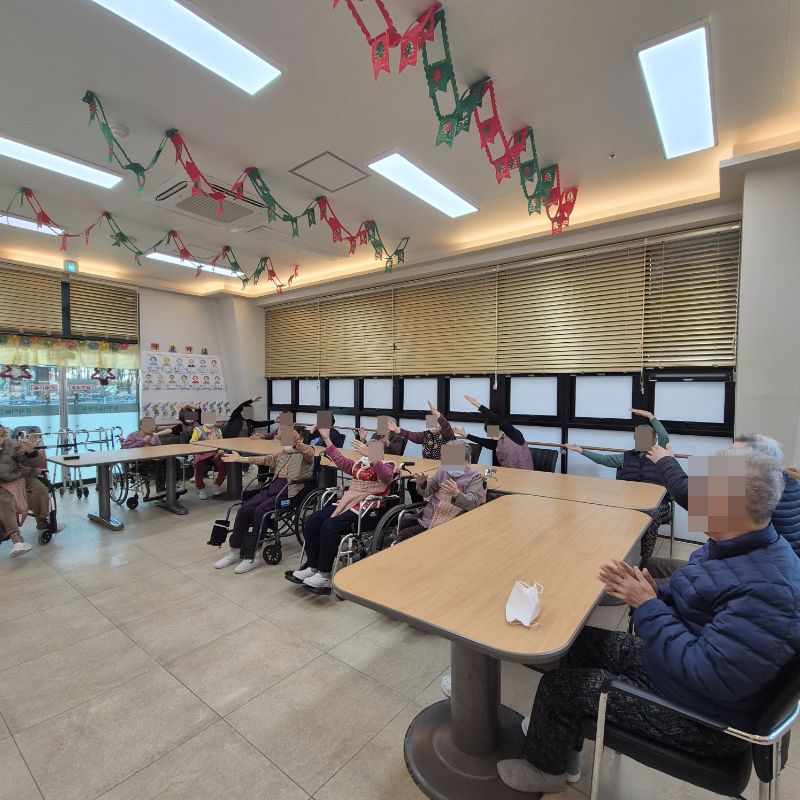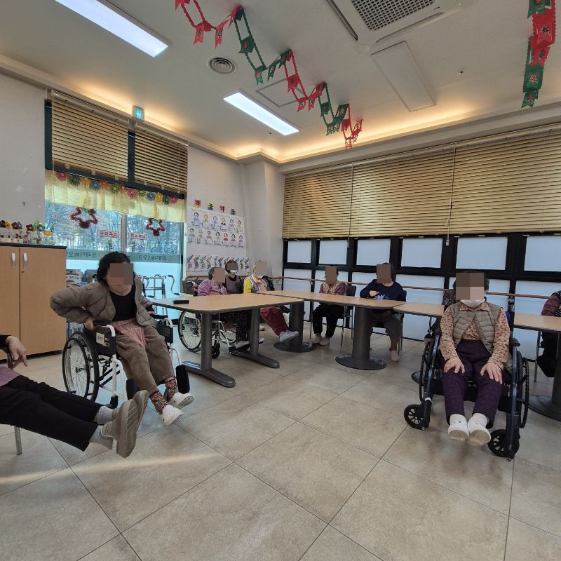 ⚬ 12월 22일 월요일_ 자기존중의 날 ⚬ 관리자 2025-12-22 17:29 오전프로그램 : 외부강사 – (인지)목표: 인지향상에 도움을 주고받으며 원하는 작품을 완성할때 성취감을 준다.기대효과: 소근육발달과 작품의 완성함을 보며 성취감을 느끼며 만족감을 형성한다.오후프로그램 : 자세 변경(신체)목표: 혼자서 운동을 할 수 없는 어르신의 관절구축을 예방하고, 스스로 체위변경 및 운동을 할 수 있도록 도와 욕창발생을 예방한다. 안정된 걸음걸이와 균형감각 훈련을 실시하여 낙상 및 그로 인한 손상을 예방한다. 어르신의 각자 신체 인지상태에서 최대한 독립적이고, 안전한 생활을 할 수 있게 한다.기대효과: 스스로 체위변경 및 운동을 할 수 있도록 도와 욕창발생을 예방한다. 균형감각 훈련을 실시하여 낙상 및 그로 인한 손상을 예방한다. 다음글 ⚬ 12월 23일 화요일_ 호기심의 날 ⚬ 이전글 ⚬ 12월 19일 금요일_ 여가지원의 날 ⚬ 목록