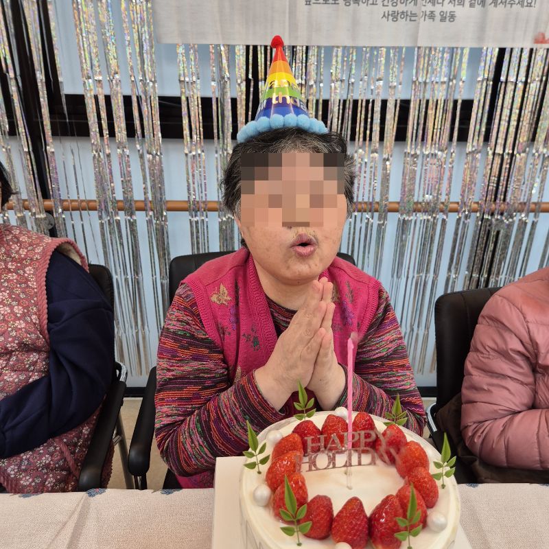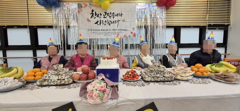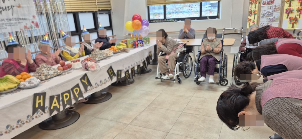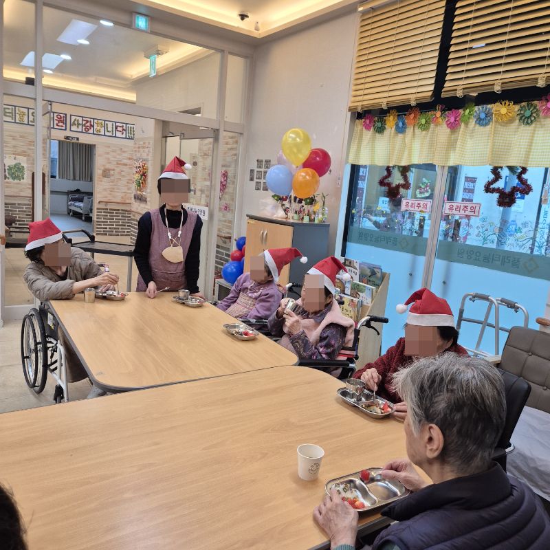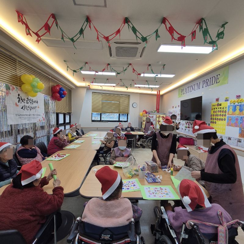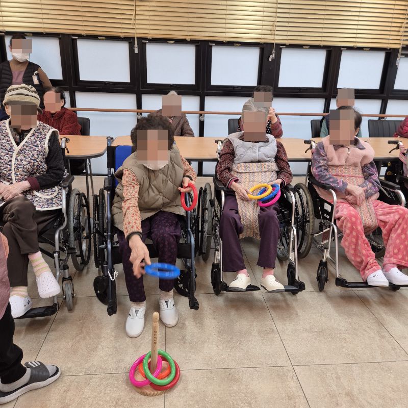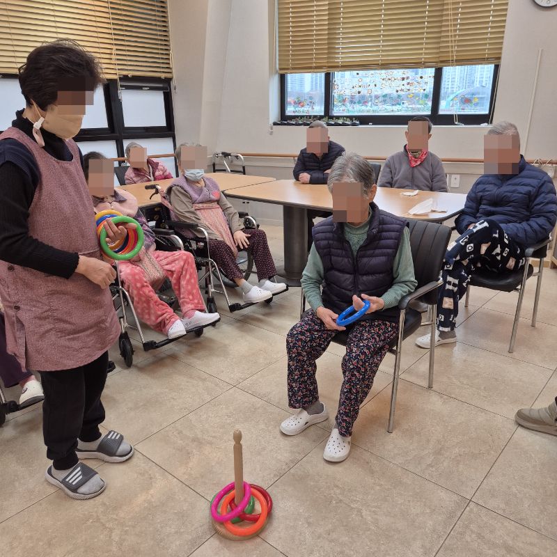 ⚬ 12월 23일 화요일_ 호기심의 날 ⚬ 관리자 2025-12-23 17:58 오전프로그램 : 고리 던지기(여가)목표: 소근육 증진과 사회성 발달및 신체 조절능력을 기를수 있다. 신체를 움직이며 기분전환을 할수 있다. 타인과 사회성을 증진할수 있다.기대효과: 소근육 증진, 사회성 발달, 신체 조절능력 향상, 기분전환 효과를 기대한다.오후프로그램 : 외부강사 – (인지)목표: 인지향상에 도움을 주고며 원하는 작품을 완성할때 성취감을 준다. 재료의 내용과 사용방법의 변화 알아본다.기대효과: 새로운 소재의 재료로 창의력을 증진한고 완성된 작품을 보며 성취감을 느껴 만족감 형성 한다.생신잔치 : 신0례어르신, 구0희어르신, 황0예어르신, 최0경어르신, 하0자어르신, 전0하어르신생신잔치를 열어 어르신들께 만수무강 하시라고 축하 인사를 드리고 축가를 불러드렸습니다.보내주신 떡과 과일을 맛있게 나눠 드시는 행복한 잔치였습니다.매일매일이 잔칫날인 오늘만 같았으면 좋겠습니다. 생신축하드립니다.~ 건강하세요.~~ 다음글 ⚬ 12월 24일 수요일_ 창의성의 날 ⚬ 이전글 ⚬ 12월 22일 월요일_ 자기존중의 날 ⚬ 목록