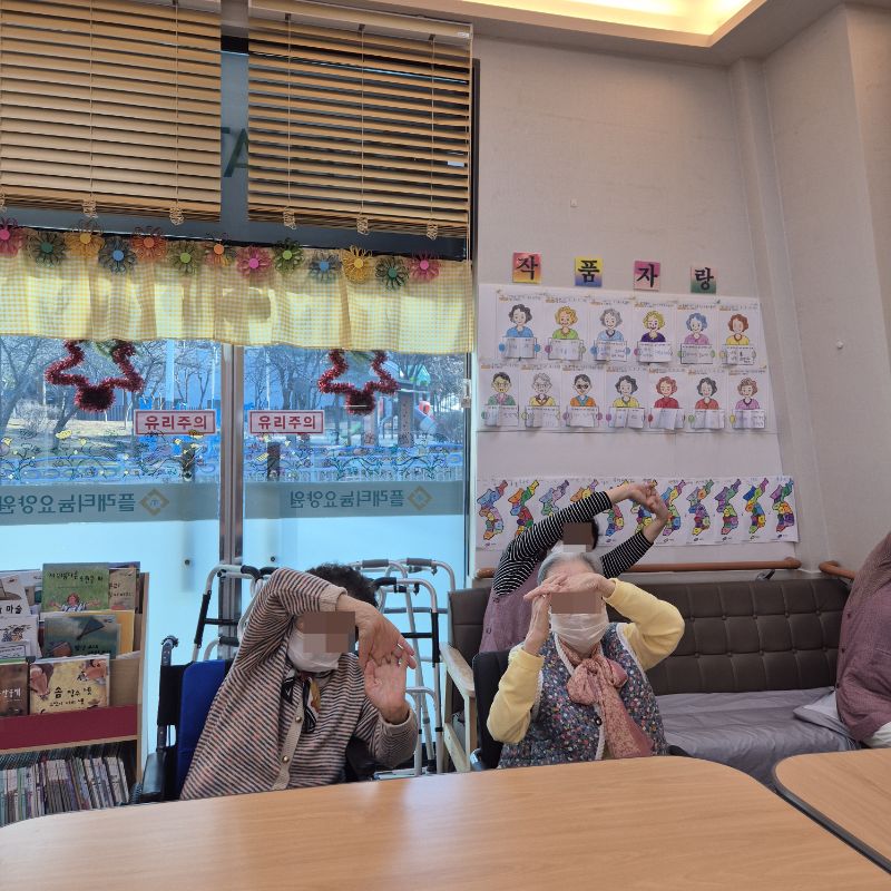 ⚬ 1월 5일 월요일_ 자기존중의 날 ⚬ 관리자 2026-01-05 17:06 오전프로그램 : 외부강사 – (인지)목표: 인지향상에 도움을 주고받으며 원하는 작품을 완성할때 성취감을 준다.기대효과: 소근육발달과 작품의 완성함을 보며 성취감을 느끼며 만족감을 형성한다.오후프로그램 : 스트레칭-상체(신체)목표: 상체 근육의 유연성 향상 및 긴장 완화. 혈액순환 개선으로 상체 부위 피로 경감. 근육 경직과 관절 통증 예방. 신체 활력 증대와 심리적 안정 제공한다.기대효과: 유연성을 증가시켜 피로와 통증 감소, 스트레칭으로 상체 부위 혈액 흐름 촉진,부드러운 동작과 마사지로 심리적 안정 제공,근육 경직 완화와 관절 기능 유지,욕창 및 부상 예방: 장시간 침상 생활로 인한 문제 감소한다. 다음글 ⚬ 1월 6일 화요일_ 호기심의 날 ⚬ 이전글 ⚬ 2026년 1월 2일 금요일_ 여가지원의 날 ⚬ 목록