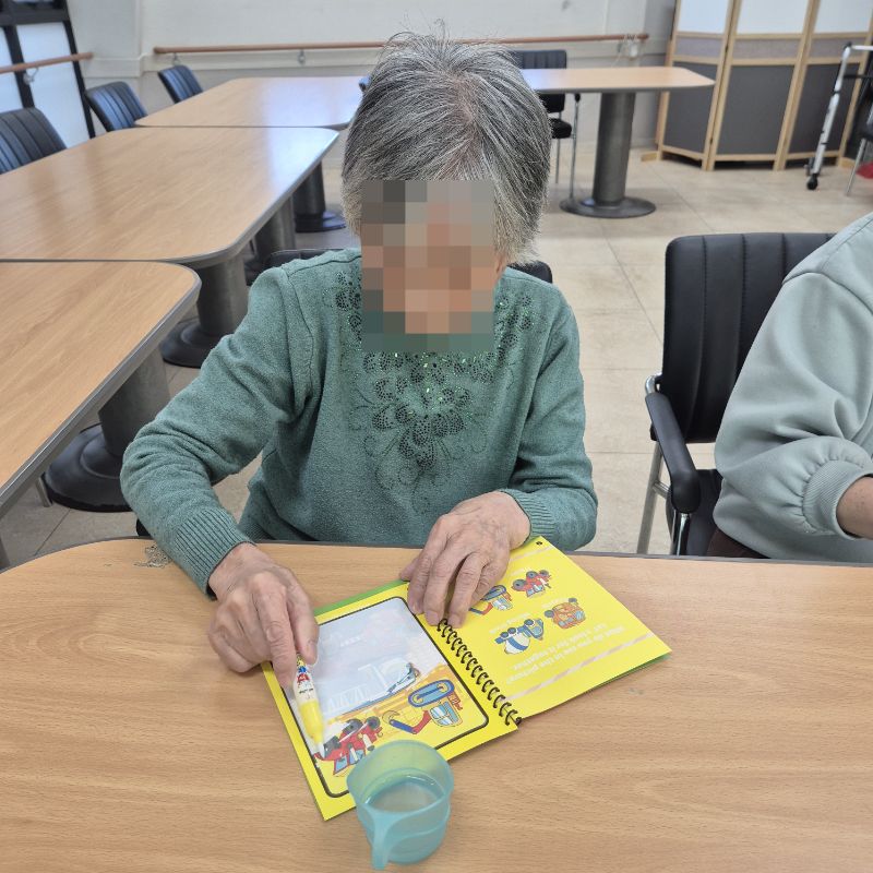 ⚬ 1월 7일 수요일_ 창의성의 날 ⚬ 관리자 2026-01-07 17:07 오전프로그램 : 외부강사- 레크레이션 (여가)목표: 레크레이션을 통해 어르신들의 신체활동을 향상한다 .기대효과: 몸을 움직이며 대∙소근육과 신진대사에 도움을 준다.오후프로그램 : 여러 도안 색칠하기(인지)목표: 다양한 미술재료와 도구를 활용하여 자신의 생각과 느낌을 자유롭게 표현함으로써 정서적 안정감을 느낀다.기대효과: 손을 움직이며 색을 칠해봄으로써 소 근육을 발달 시킬 수 있다. 도안에서 색을 벗아나지 않게 집중해 집중력을 향상 시킬 수 있다. 다음글 ⚬ 1월 9일 금요일_ 여가지원의 날 ⚬ 이전글 ⚬ 1월 6일 화요일_ 호기심의 날 ⚬ 목록