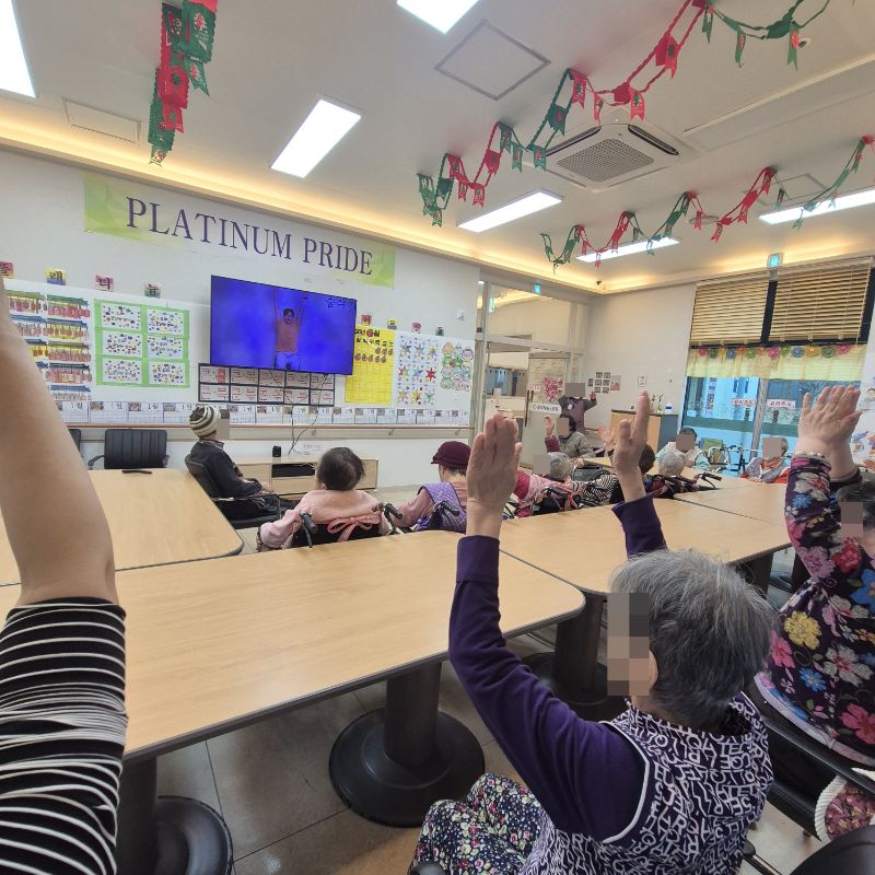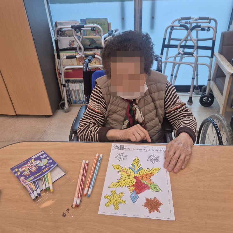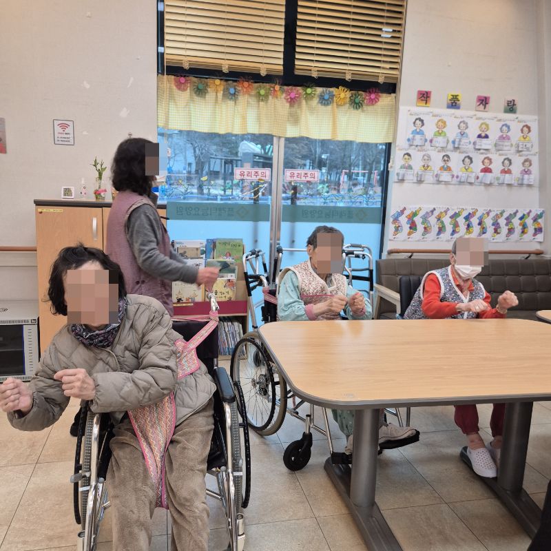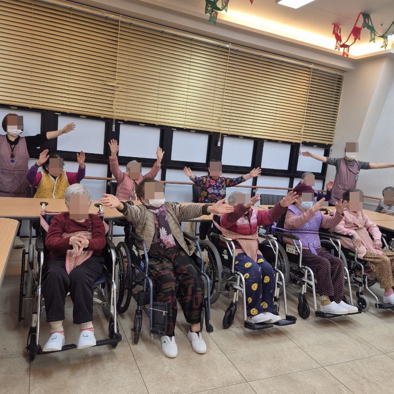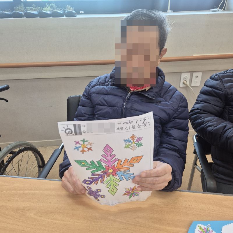 ⚬ 1월 9일 금요일_ 여가지원의 날 ⚬ 관리자 2026-01-09 17:18 오전프로그램 : 외부강사 – (인지)목표: 인지향상에 도움을 주고며 원하는 작품을 완성할때 성취감을 준다. 계절에 맞는 재료의 내용을 살펴 보고 경험담을 이야기 나눠 본다.기대효과: 계절에 맞는 재료를 사용하여 계절의 변화에 적응할수 있다. 경험담을 이야기하며 자신감을 갖는다.오후프로그램 : 국민 체조(신체)목표: 전신 근육의 균형 있는 사용으로 신체 건강 유지, 유연성 및 근력을 강화하여 일상생활 동작 수행 능력 향상, 심폐 기능 개선과 혈액순환 촉진, 규칙적인 운동 습관 형성 및 정서적 안정을 도모한다.기대효과: 관절 가동 범위와 균형감각이 개선되어 일상생활에서의 움직임이 원활해짐. 음악과 함께하는 국민체조는 재미와 동기부여를 제공하여 심리적 만족감을 높인다. 다음글 ⚬ 1월 12일 월요일_ 자기존중의 날 ⚬ 이전글 ⚬ 1월 7일 수요일_ 창의성의 날 ⚬ 목록