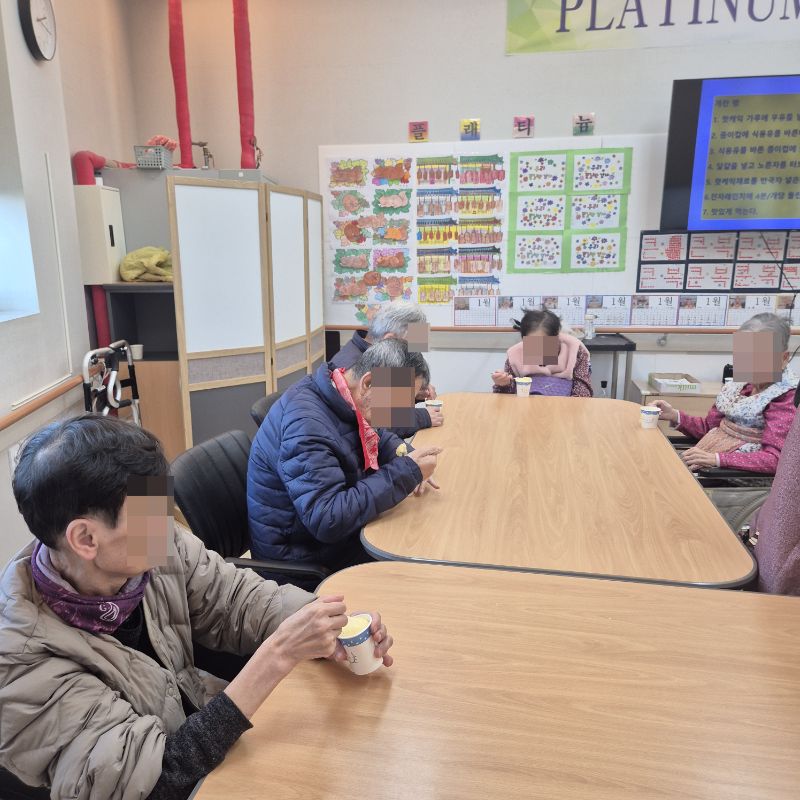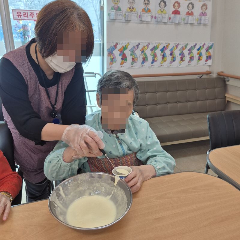 ⚬ 1월 16일 금요일_ 여가지원의 날 ⚬ 관리자 2026-01-16 17:20 오전프로그램 : 자세 변경(신체)목표: 혼자서 운동을 할 수 없는 어르신의 관절구축을 예방하고, 스스로 체위변경 및 운동을 할 수 있도록 도와 욕창발생을 예방한다. 안정된 걸음걸이와 균형감각 훈련을 실시하여 낙상 및 그로 인한 손상을 예방한다. 어르신의 각자 신체 인지상태에서 최대한 독립적이고, 안전한 생활을 할 수 있게 한다.기대효과: 스스로 체위변경 및 운동을 할 수 있도록 도와 욕창발생을 예방한다. 균형감각 훈련을 실시하여 낙상 및 그로 인한 손상을 예방한다.오후프로그램: 컵케익 만들기(가족)목표: 여러 어르신들과 다함께 가루를 섞고 익히며, 공감대를 형성, 과거 기억을 회상한다.기대효과: 요리활동을 통해 좋은기억의 유지및 자존감 향상, 눈과 손의 협응력, 집중력 및 생활의 활력소 도모, 함께하는 즐거움을 느낀다. 다음글 ⚬ 1월 17일 토요일_ 공연관람 ⚬ 이전글 ⚬ 1월 14일 수요일_ 창의성의 날 ⚬ 목록