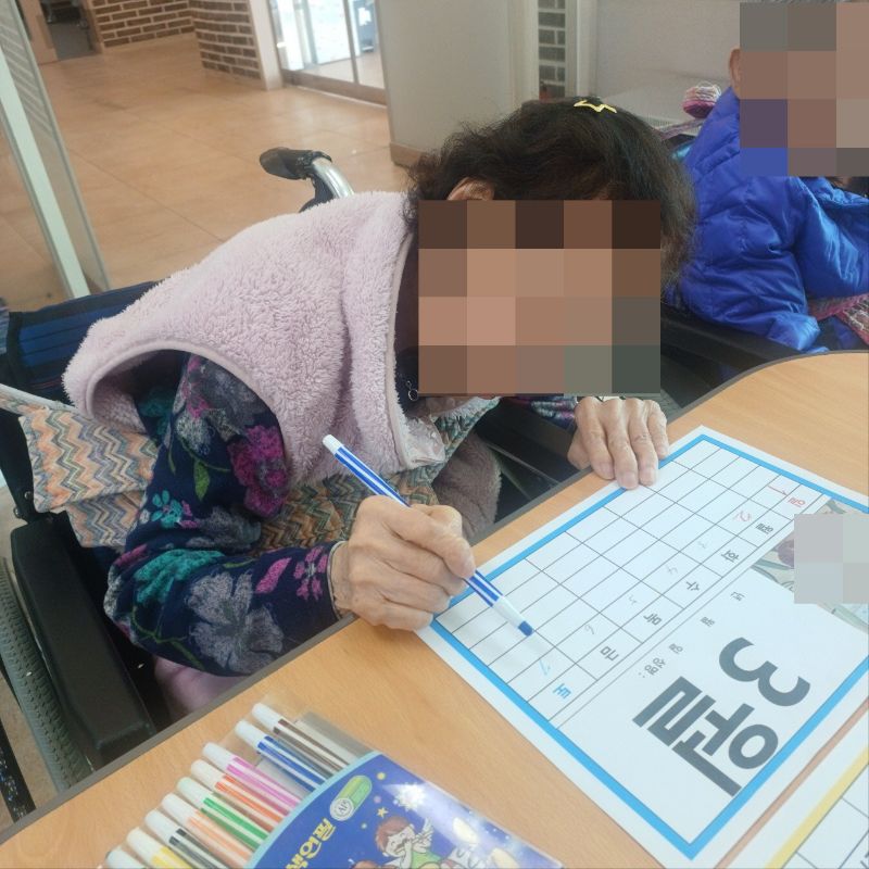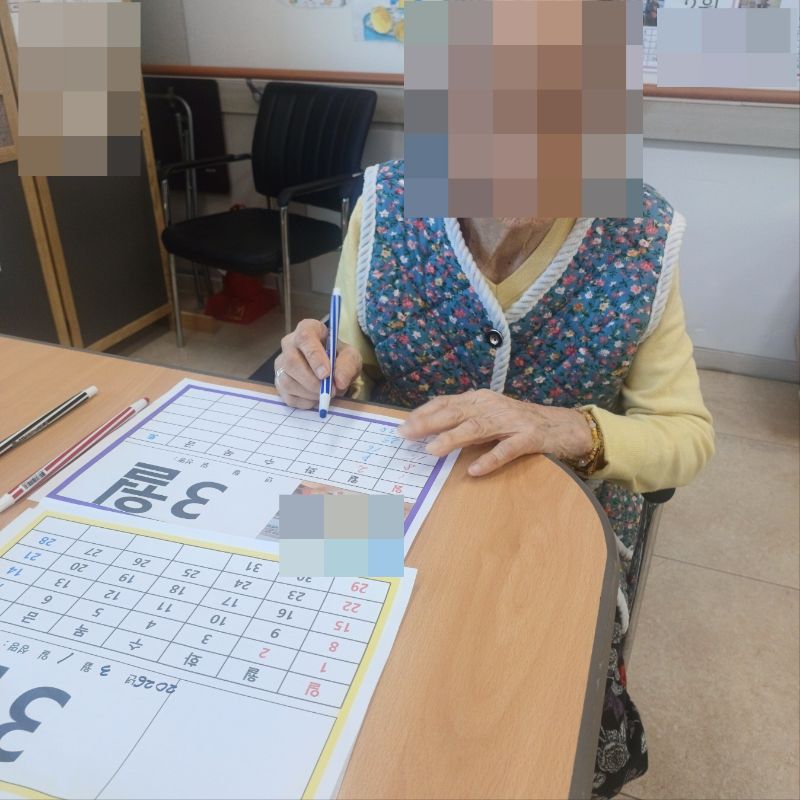 ⚬ 2월 25일 수요일_ 창의성의 날 ⚬ 관리자 2026-02-25 17:37 오전프로그램 : 외부강사- 레크레이션 (여가)목표: 레크레이션을 통해 어르신들의 신체활동을 향상한다 .기대효과: 몸을 움직이며 대∙소근육과 신진대사에 도움을 준다.오후프로그램 : 새로운달 알아보기(인지)목표: 숫자를 알고 기억해 순서대로 써보고 계절의 변화를 알 수 있다. 스티커를 붙이며 소근육을 증진한다.기대효과: 숫자를 기억하여 인지 기능 향상한다. 계절지남력 향상한다. 다음글 ⚬ 2월 27일 금요일_ 여가지원의 날 ⚬ 이전글 ⚬ 2월 24일 화요일_ 호기심의 날 ⚬ 목록