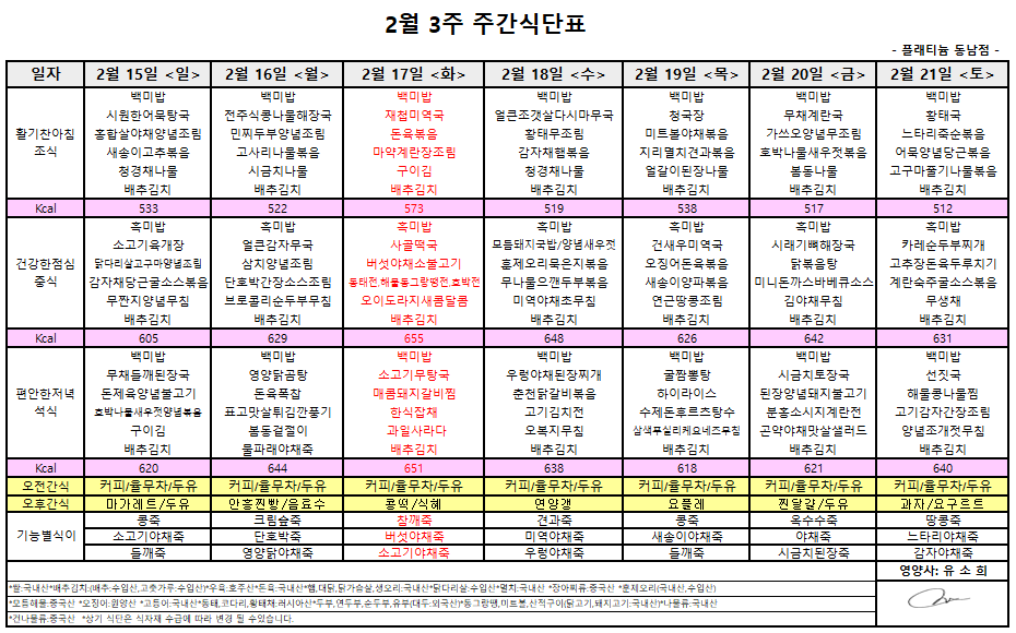 ㅇ 2월3주 식단표 ㅇ